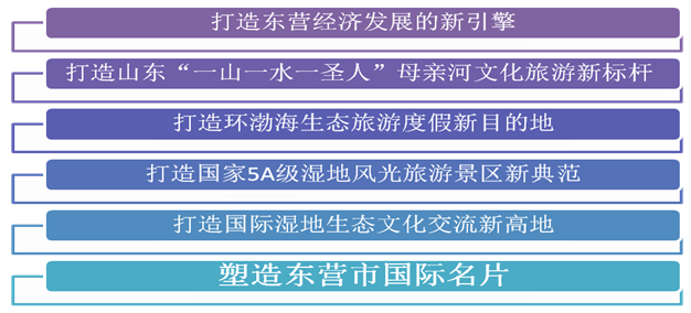 作為山東推進“一體兩翼”及黃河三角洲高效生態(tài)經(jīng)濟區(qū)開發(fā)建設(shè)的主戰(zhàn)場,加快改變旅游業(yè)發(fā)展在山東的落后地位十分迫切。市旅游開發(fā)有限公司為貫徹《市全域旅游發(fā)展三年行動實施方案(2017-2019)》文件精神,以黃河入??跒楸尘?,在保護好原有濕地自然景觀的前提下,為目標(biāo)游客量身定制黃河文化生態(tài)旅游區(qū)項目,不僅為黃河入海的自然風(fēng)景增加了一個亮點,也為打造了一個形象標(biāo)志、核心靈魂。更為華夏子孫感恩母親河的哺育有了一個崇拜場所,同時也為山東的“一山一水一圣人”中的“母親河水文化”填補了形象上的空白。