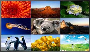如上圖,其中有四個液晶單元可拼接顯示一幅大畫面,圖中的是2行2列的組合拼接,其他的屏幕可單屏顯示其他信號。全屏拼接顯示: