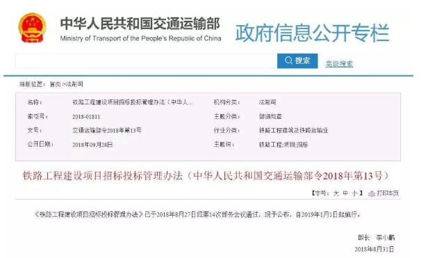 為規(guī)范鐵路工程建設項目招標投標活動,維護國家利益、社會公共利益和招標投標活動當事人的合法權益,我們制定了《鐵路工程建設項目招標投標管理辦法》(交通運輸部令2018年第13號)。...