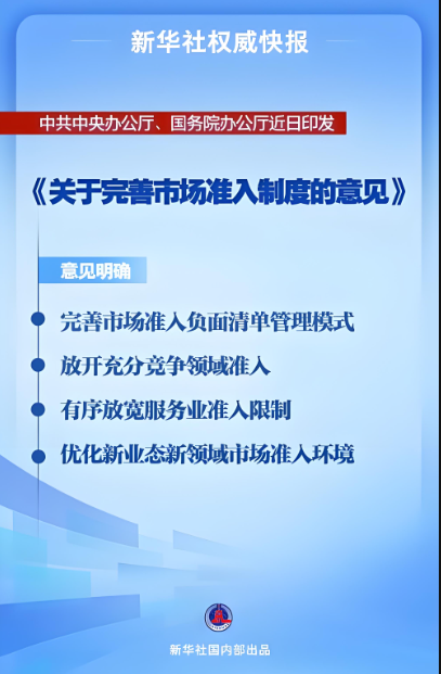 近日,中共中央辦公廳、國(guó)務(wù)院辦公廳印發(fā)《關(guān)于完善市場(chǎng)準(zhǔn)入制度的意見(jiàn)》,對(duì)完善市場(chǎng)準(zhǔn)入制度作出系統(tǒng)部署。更好吸引和利用外資,既需要短期施策,為外資企業(yè)排憂解困,也需要著眼長(zhǎng)遠(yuǎn),持續(xù)優(yōu)化營(yíng)商環(huán)境,推動(dòng)擴(kuò)大制度型開(kāi)放,全面提振外資企業(yè)在...