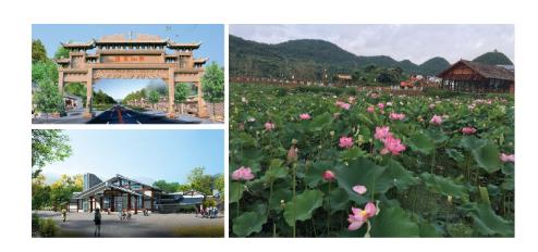 本項目占地面積8萬余平方米,是貴陽首屆農(nóng)業(yè)嘉年華舉辦地之一。荷塘月色是核心區(qū),主要有荷塘、薰衣草、向日葵、油菜花、層層梯田、百草園、三味書屋、婚慶系列、健身步道等“九大要素”。建設入口大門、景觀文化墻、觀光荷花池、步行拱橋、休閑廣場,在適宜居住區(qū)域布局村寨建筑。