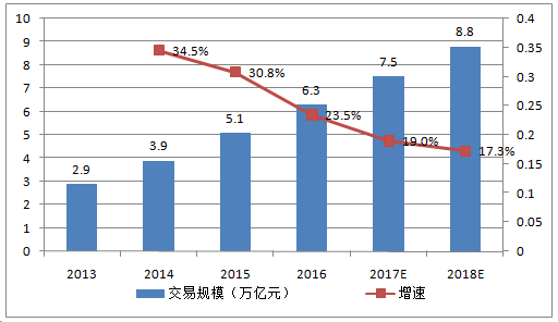 2013-2018年中國(guó)跨境電商交易規(guī)模及預(yù)測(cè)