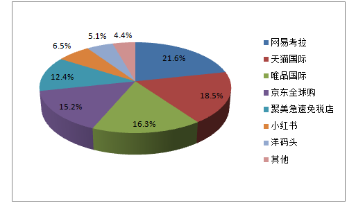 2016年中國(guó)跨境電商零售進(jìn)口平臺(tái)銷(xiāo)售份額占比