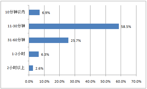 2016年中國(guó)手機(jī)海淘用戶每次使用海淘應(yīng)用時(shí)間分布