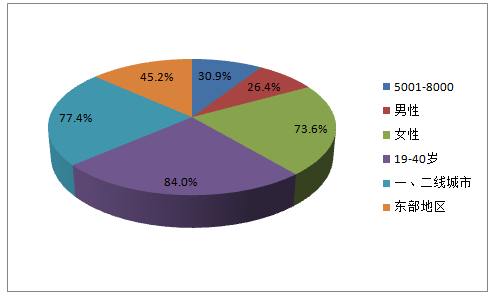 數(shù)據(jù)顯示,2016年73.6%中國(guó)海淘用戶為女性,30.9%中國(guó)海淘用戶月均收入為5001-8000元。84.0%海淘用戶年齡為19-40歲人群,45.2%中國(guó)海淘用戶位居江浙滬等東部地區(qū)。位于一線或二線城市的海淘用戶占比達(dá)到77.4%。