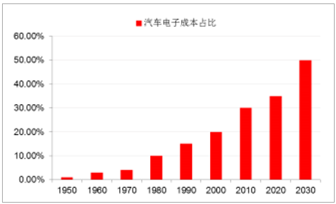 汽車(chē)技術(shù) 70%左右的創(chuàng)新源自于汽車(chē)電子,汽車(chē)電子技術(shù)的應(yīng)用程度已經(jīng)成為衡量整車(chē)水平的主要標(biāo)志,電子產(chǎn)品在整車(chē)的價(jià)值量占比不斷提升,目前單臺(tái)汽車(chē)的汽車(chē)電子價(jià)值量占比從 1950 年的 1%提升到目前的 20%~35%,主要因?yàn)槠?chē)電子復(fù)雜度和功能不斷提高,從最早期的車(chē)載無(wú)線電、電子點(diǎn)火裝置到如今的安全控制系統(tǒng)、動(dòng)力控制系統(tǒng)等多種機(jī)電一體化單元的組合,系統(tǒng)復(fù)雜度不斷提高,單體價(jià)值量不斷提升。未來(lái)隨著 ADAS、 TPMS、虛擬儀表等汽車(chē)電子新品不斷涌現(xiàn),汽車(chē)電子有望迎來(lái)新的增量市場(chǎng)。