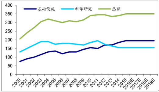 美國NSF海洋領(lǐng)域經(jīng)費投入情況(百萬美元)