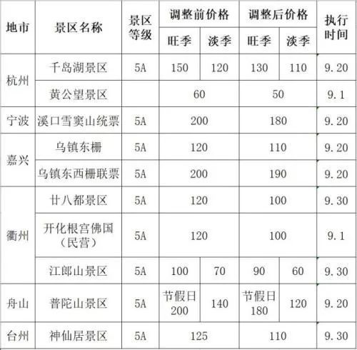 浙江省:8個5A景區(qū)降價 普遍下降10~20元。