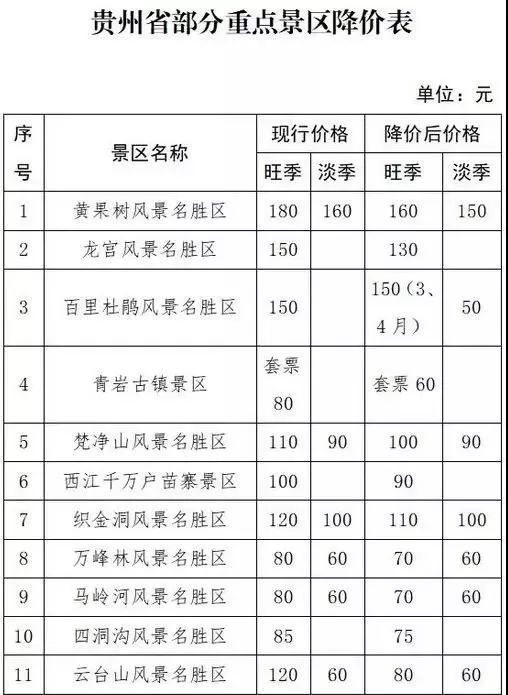 1、黃果樹風(fēng)景名勝區(qū)旺季門票價格由180元/人降為160元/人,淡季門票價格由160元/人降為150元/人。