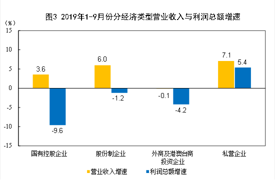 1—9月份,規(guī)模以上工業(yè)企業(yè)中,國(guó)有控股企業(yè)實(shí)現(xiàn)利潤(rùn)總額13892.7億元,同比下降9.6%;股份制企業(yè)實(shí)現(xiàn)利潤(rùn)總額33721.4億元,下降1.2%;外商及港澳臺(tái)商投資企業(yè)實(shí)現(xiàn)利潤(rùn)總額11341.9億元,下降4.2%;私營(yíng)企業(yè)實(shí)現(xiàn)利潤(rùn)總額12631.6億元,增長(zhǎng)5.4%。